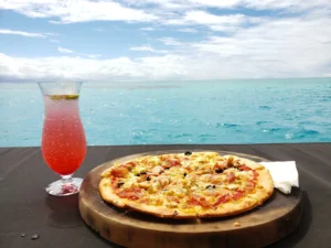 On a good-weather day, the appeal is obvious within minutes. The water colour is extraordinary, the snorkelling can be fun around the platform, and there is a holiday buzz that feels very Fiji – relaxed, sunny and easygoing. Food and drinks add to the experience, and many people settle in quickly with a drink in hand and spend the day alternating between swimming, eating and soaking up the view.